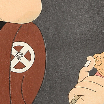 寛政6年(1794)、浮世絵界に彗星のように登場し、わずか10ヶ月の作家活動の間に140数点もの浮世絵を世に送り出すと忽然と姿を消しました。写楽は大判のしかも背景を高価な黒雲母摺という尋常ならぬデビューを果たしました。版元の蔦屋重三郎は、歌麿が重三郎の専属を離れたのちに大々的に写楽を売り出しましたが、次第に大判が少なくなっていきます。その理由として、写楽の人気役者であろうと美化せずに、ありのままを描きとる筆致は、役者ファンをはじめ当時の人々の好みに合わなかったからなのかもしれません。しかし、どれも躍動感にあふれた役者絵は見る者に強烈なインパクトを与え、海外でも高い評価を得ています