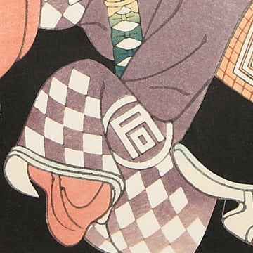 三世佐野川市松は、当時若女形として大変人気がありました。初代は石畳模様(元禄模様という)の衣裳を用いて流行になり、俗にいう市松模様の名を起こした役者でもありました。