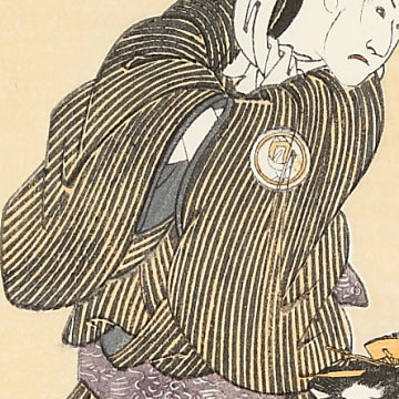 三世坂東彦三郎は、八世市村羽左衛門の末っ子で、尾上菊五郎の養子になります。和事実事に長じ、所作事も堪能でその人格も高く「常に野卑なる事を好まず、画をなし茶事を好み」と伝えられています。文化、文政時代に名優といわれたその芸格、人格を写楽は完全にとらえています。文政十一年二月、七十五歳で没。このとき彦三郎は四十一歳でした。