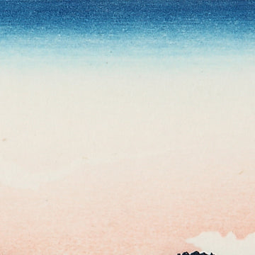 題名のとおり、全図に富士山のある風景を描いたシリーズ物で、葛飾北斎の代表作にとどまらず、浮世絵風景画の代表作ともいわれています。はじめ、三十六図が刊行されましたが、好評のため十図が追加され、計四十六図が刊行されました。当初の三十六図を「表富士」、追加の十図を「裏富士」と呼びます。富士山への篤い信仰は今と変わらず人々の間にあり、当時、集団で富士山に参拝する「富士講」が盛んに行われるなど、こうした社会背景のなかで北斎は『富嶽三十六景』を描き、爆発的ヒットとなりました。